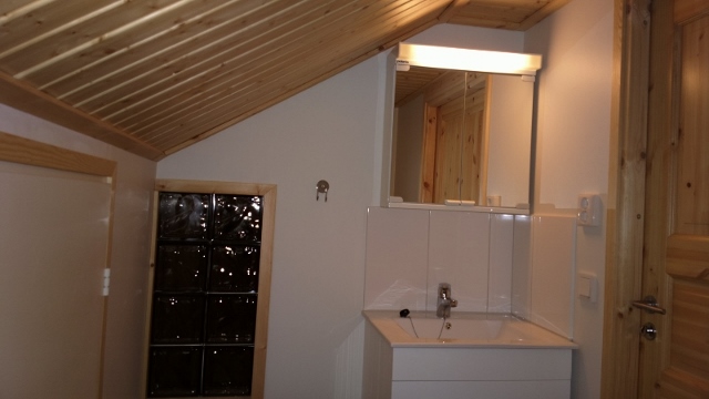 Tupakeiitiö, kaakelitakka, sauna, pesuhuone, 2 wc, ulkovarasto, terassi, alakerrassa kaksi makuuhuonetta, joissa kummassakin 2 runkopatjasänkyä vierekkäin. Saa myös erikseen.