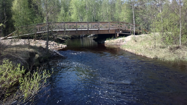 Kesällä luonnon läheisyys tuntuu ja kuuluu. Joelle on etäisyyttä vain noin 100 m. Joen virtaus kuuluu kesäaamuisin mökille asti.