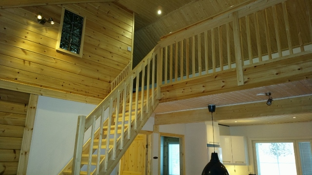 Huippuvarusteltu paritalo höylähirrestä, valmistunut 2013.