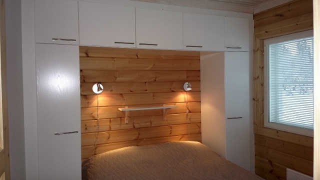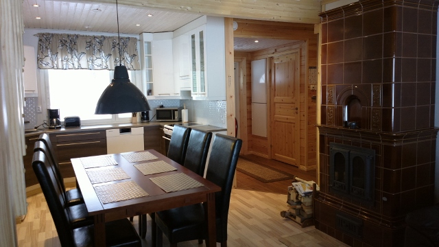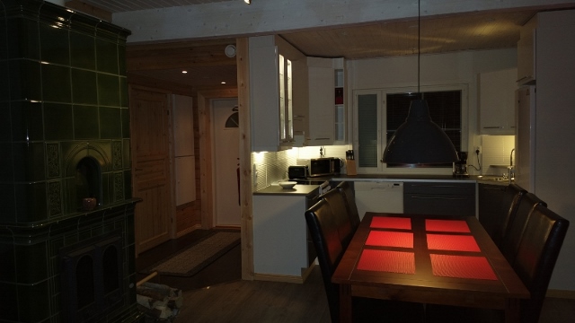 sähkö, vesi, sähkölämmitys, varaava takka, sähköhella, jääkaappi, pakastin, mikroaaltouuni, leivänpaahdin, kahvin- ja vedenkeitin, pyykinpesukone, vaatteiden kuivauskaappi,